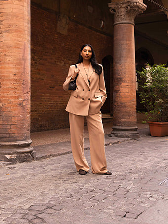 The "Shop the Look" section was created to offer easily wearable style inspiration. Each proposal is a complete outfit, with pieces selected to create harmonious combinations: co-ordinating blazers and trousers, dresses with matching accessories, or more casual looks with trendy jeans and t-shirts. It's ideal for those seeking a cohesive and refined style without having to think about pairings.