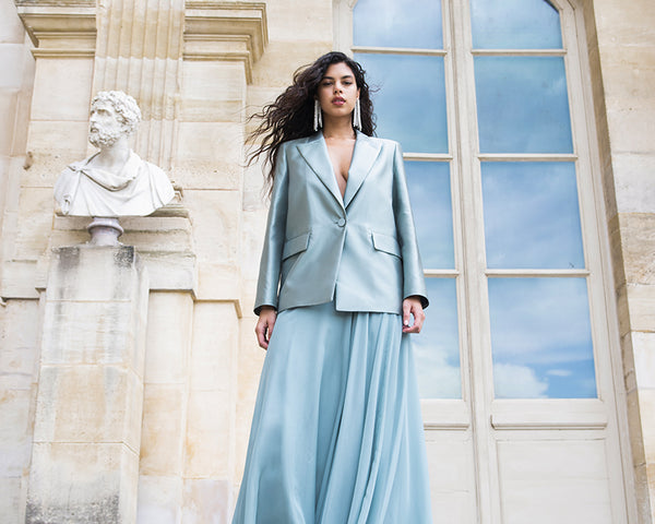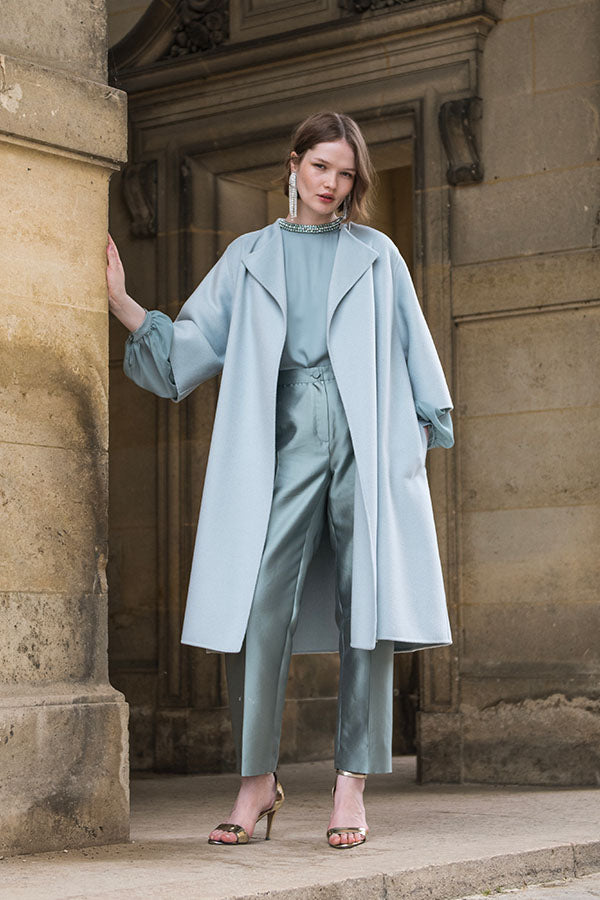 Delicate pastel tones, airy and luxurious fabrics, and sleek, understated silhouettes define the looks of the FW25 Elegante collection. The new garments capture the fairy-tale charm of the Château de Chantilly, reflecting a fresh vision of modern, refined femininity.