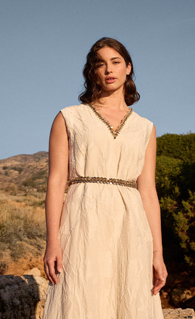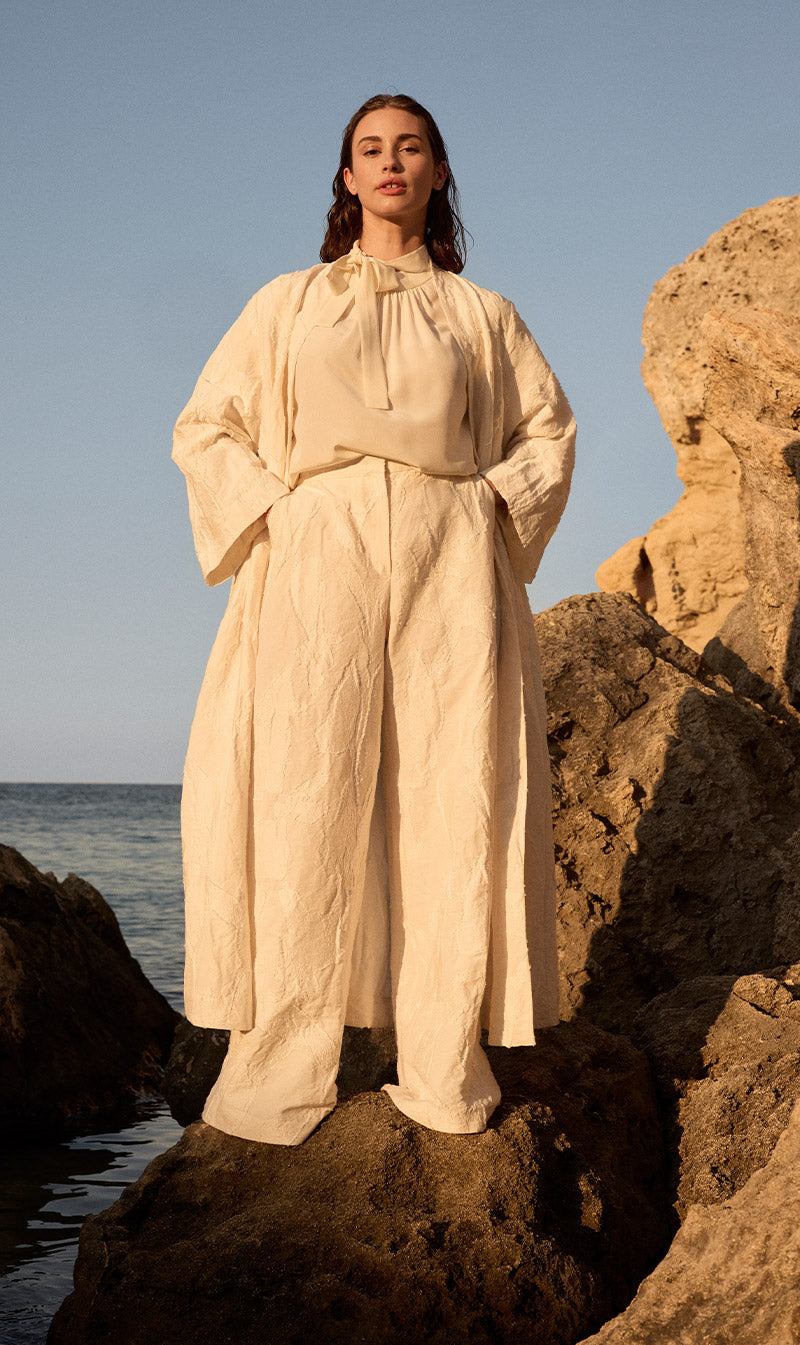 The looks in the SS26 collection usher in the new season with designs that celebrate heritage, craftsmanship and tailoring in every detail. Playful, radiant nuances echo the warmth of the colour palette, from sand and ochre to beige, blending with luxurious fabrics, embroideries and refined embellishments to create a unique and distinctive wardrobe.