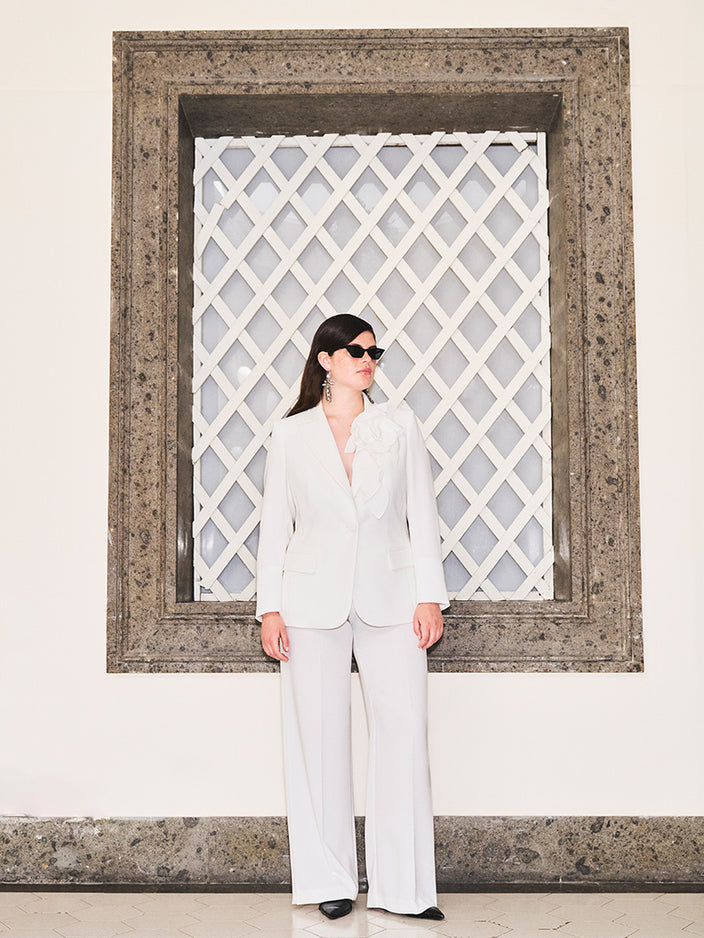Elegance has its rules. An impeccable all-white look is built on attention to detail and the quality of the materials. Avoiding sheer fabrics that lack sartorial structure is essential, as is combining different shades of white in a balanced manner. The contrast between optical white and cream white can work if studied carefully, while an off-white jacket over snow-white silk trousers can be jarring. Garment care is also crucial: white requires careful maintenance to preserve its brightness and purity over time. Opting for high-quality fabrics and impeccable tailoring ensures that your look always stands up to scrutiny.
