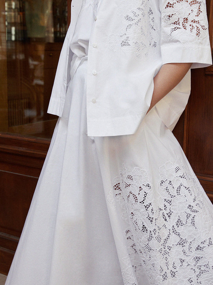 A maxi dress in eyelet embroidery paired with low sandals and a raffia bag creates a chic holiday look, while an oversized shirt with a pair of shorts is the ideal combination.
