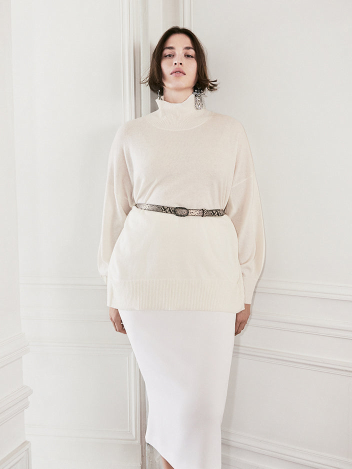 The secret of its excellence lies in the workmanship: finer knits for sophisticated elegance, larger ones for a sensation of enveloping softness. The delicate shades of beige and white enhance the purity of the fibre.