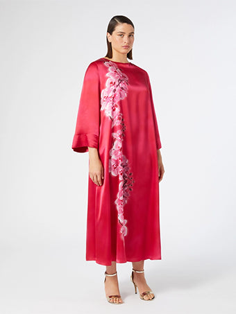 The elegant A-line flows gently over the body without clinging, while the sash tie at the collar adds a polished, vintage-inspired detail.