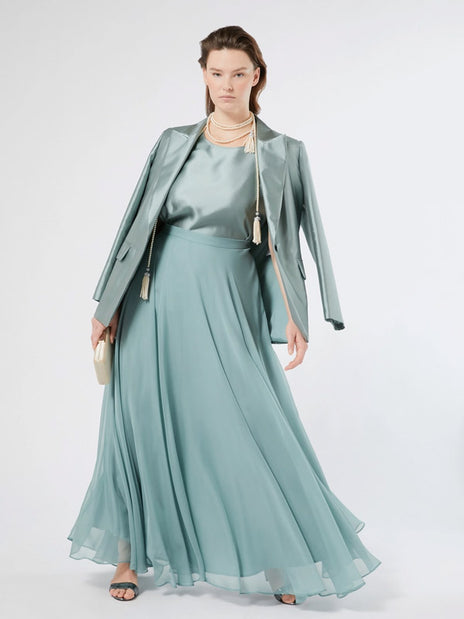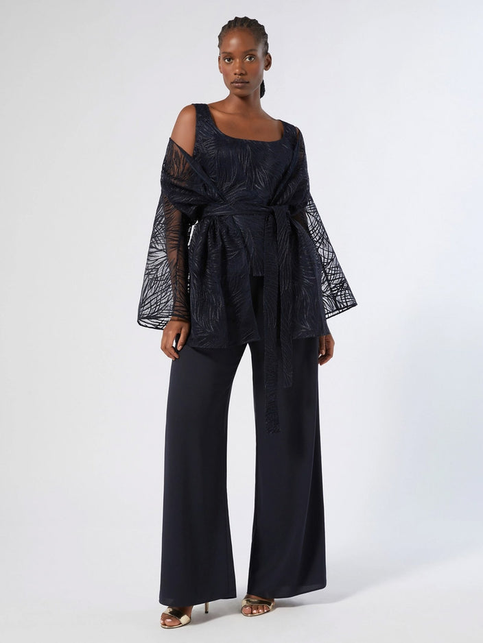 Under-jackets or elegant tops combined with structured create a sophisticated look ideal for formal events or professional settings, like our crêpe blazer. Choose a blazer that complements the colour and style of the top for a harmonious result. Tailored jackets, for example, can add a touch of class and professionalism, while softer, fluid jackets can offer an elegant yet less formal appearance.