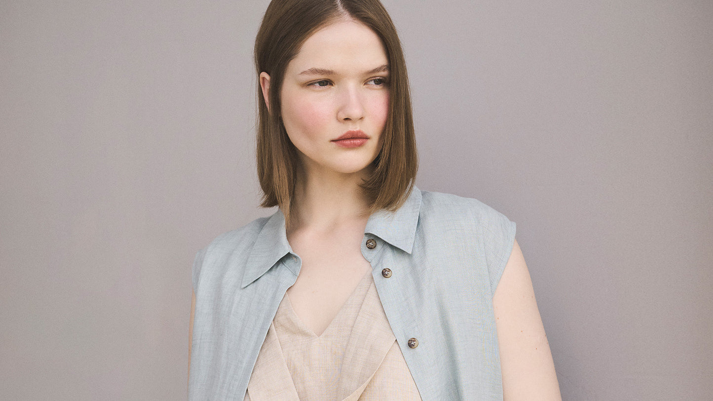 At the top of the list this season is the : linear, sophisticated, with pleated plastron and mother-of-pearl buttons. A daytime piece to personalise with a belt, a pair of mules and an oversized bag.