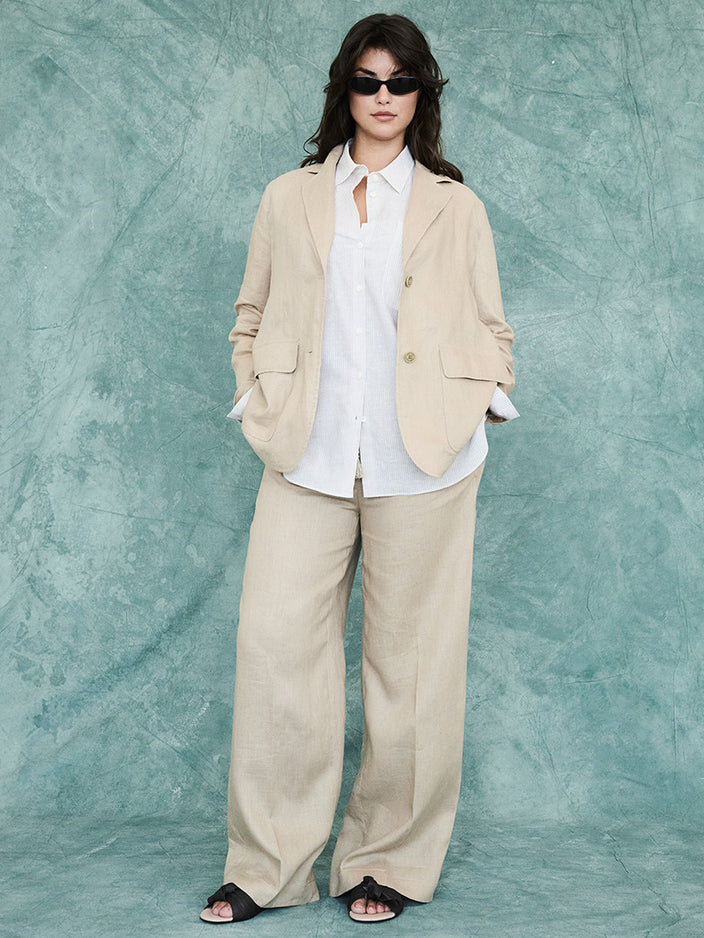 Choose the right fit: avoid items that are too tight. Linen craves ease and movement, falling effortlessly over every silhouette, especially in relaxed, oversized tailoring.