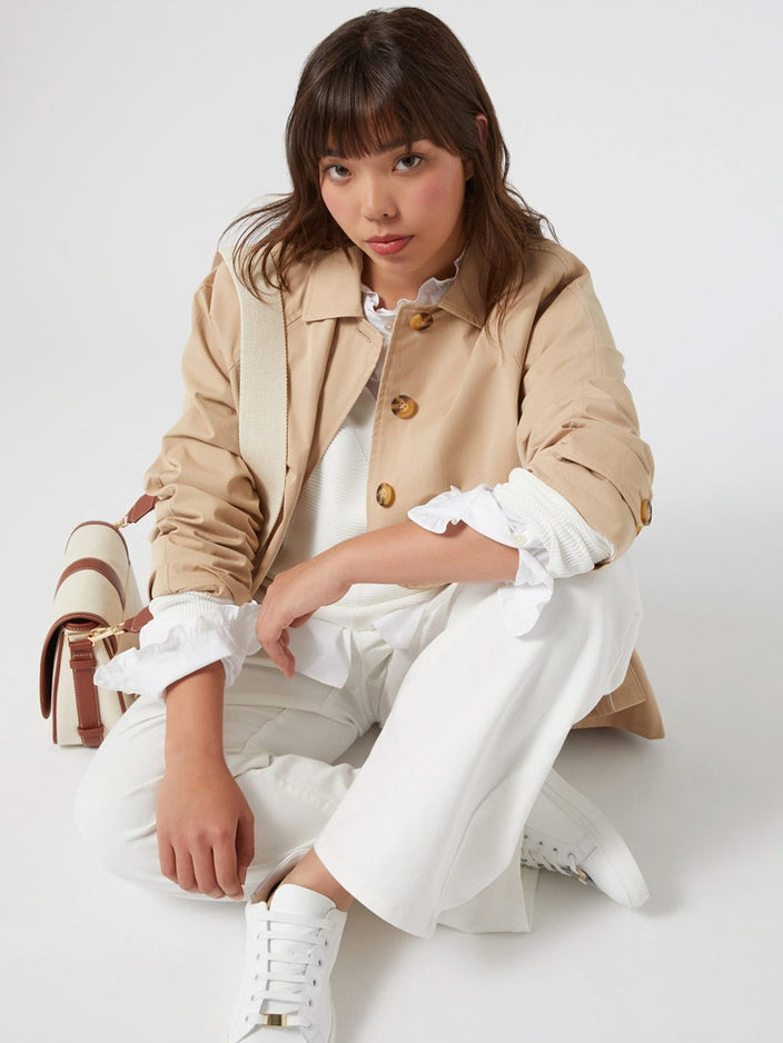The beige trench coat is an icon of versatility in neutrals. For a harmonious look, it is perfect combined with garments in natural shades.