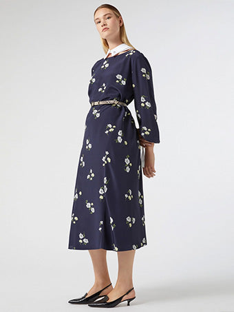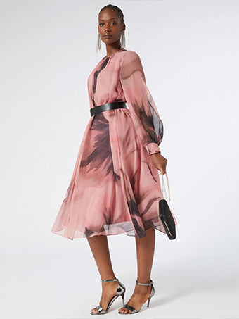 An example? featuring a wave print that has an artistic, sophisticated touch. Alternatively, solid-color models allow you to build the look with a few well-balanced accessories. Furthermore, they offer great usability over time: with a flat shoe and a contrasting bag, long dresses can be transformed for other occasions, even less formal ones.